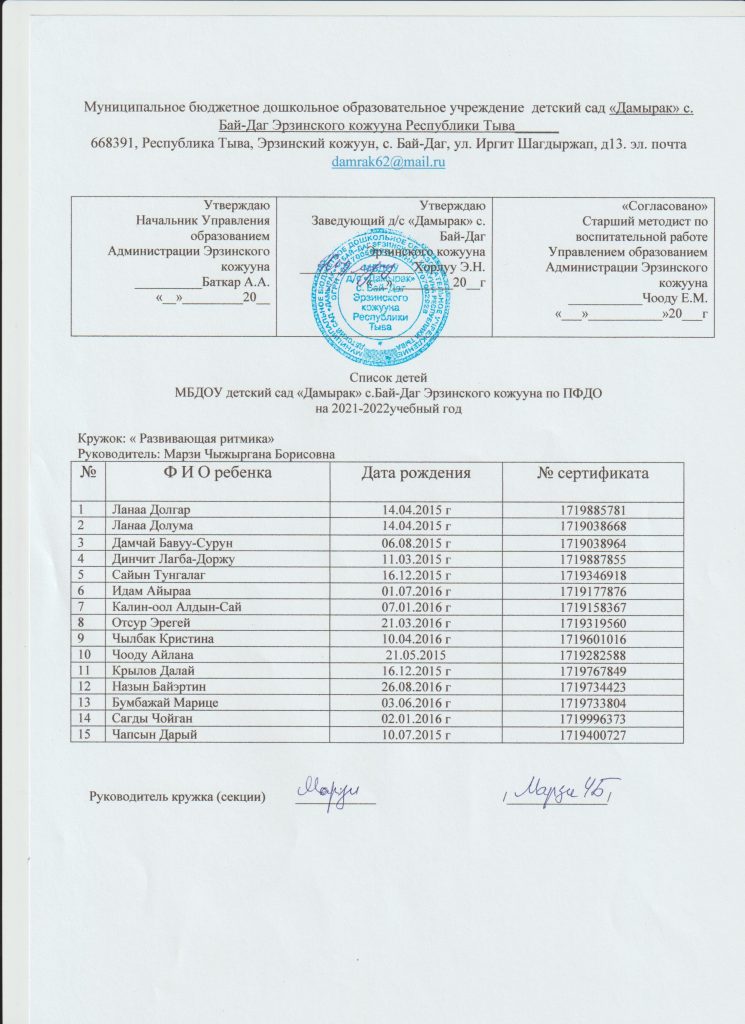 ПРИКАЗ, список детей